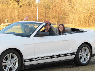 Daughter Leah and Steven's new Mustang (pony) that they got. Amanda and boyfriend are in back - this picture taken Sunday evening, but they drove over again last night. Yesterday was Steven's Birthday! Mid forties! - Wish I was there again! Such a cute car and what fun they'll have this summer!